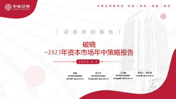 【中泰证券】【20230406】2023年资本市场年中策略报告:破晓-20页 行业研究