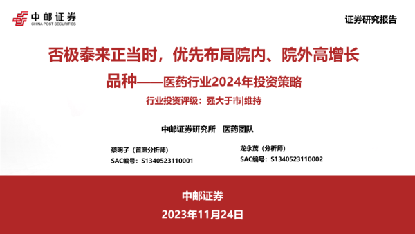 【中邮证券】【20231124】医药行业2024年投资策略:否极泰来正当时,优先布局院内、院外高增长品种-54页 行业研究