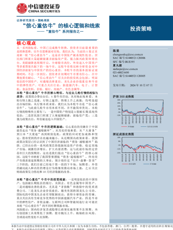 【中信建投证券】【20241007】“重估牛”系列报告之一:“信心重估牛”的核心逻辑和线索-23页 宏观策略
