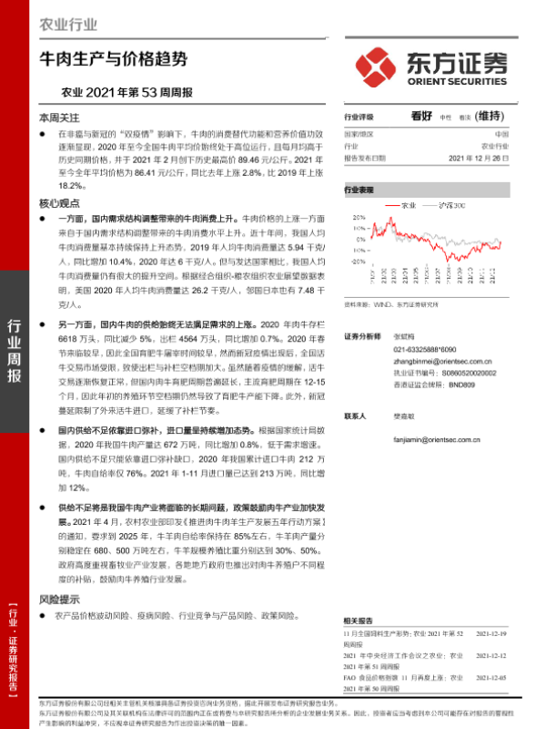 【东方证券】【20211226】农业2021年第53周周报:牛肉生产与价格趋势-9页 行业研究