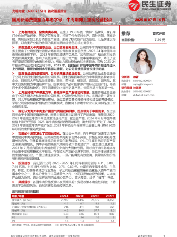 【民生证券】【20250716】光明肉业首次覆盖报告:国潮新消费重塑百年老字号;牛周期向上重视经营拐点-31页 证券期货研究报告