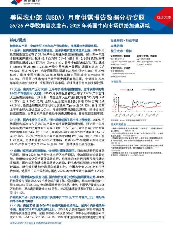 【国信证券】【20250518】林牧渔行业美国农业部(USDA)月度供需报告数据分析专题-34页 证券期货研究报告