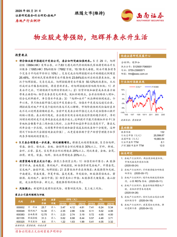 【西南证券】【20200531】房地产行业例评:物业股走势强劲,旭辉并表永升生活-22页 行业研究