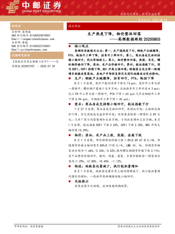 【中邮证券】【20250804】生产热度下降_物价整体回落-13页 证券期货研究报告