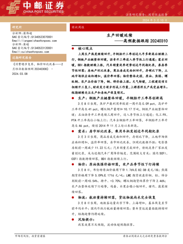 【中邮证券】【20240310】高频数据跟踪:生产回暖延续-12页 行业研究