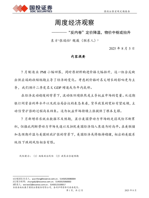 【国投证券】【20250805】周度经济观察:“反内卷”定价降温,物价中枢或抬升-12页 宏观策略