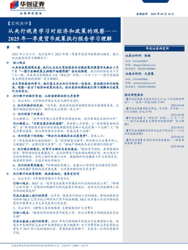 【华创证券】【20250510】2025年一季度货币政策执行报告学习理解:从央行视角学习对经济和政策的观察-10页 宏观策略