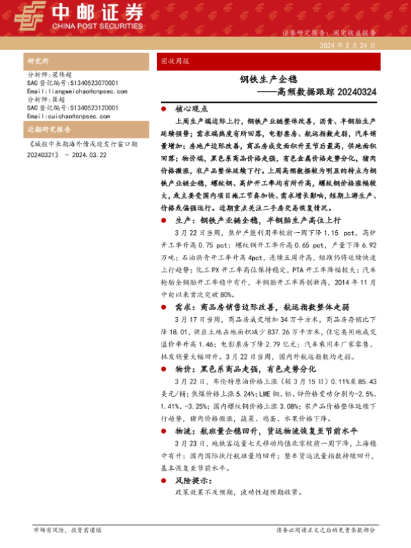 【中邮证券】【20240324】高频数据跟踪:钢铁生产企稳-13页 行业研究