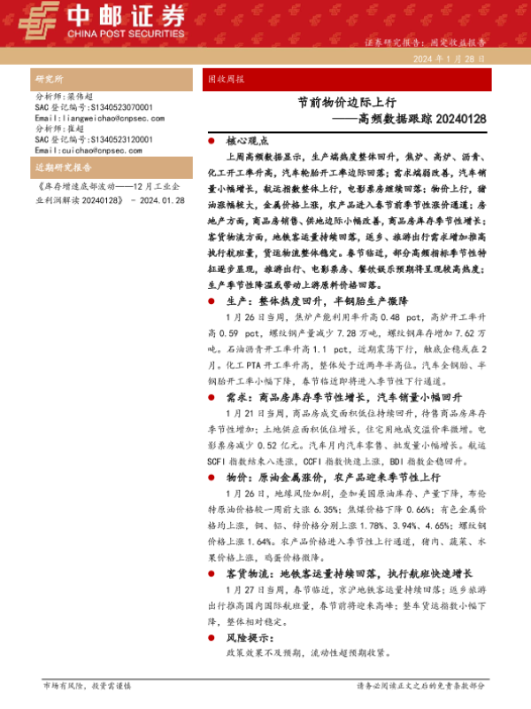 【中邮证券】【20240128】高频数据跟踪:节前物价边际上行-13页 行业研究