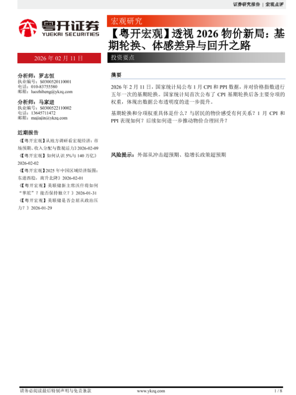 【粤开证券】【202602】【粤开宏观】透视2026物价新局:基期轮换、体感差异与回升之路-8页 证券期货研究报告