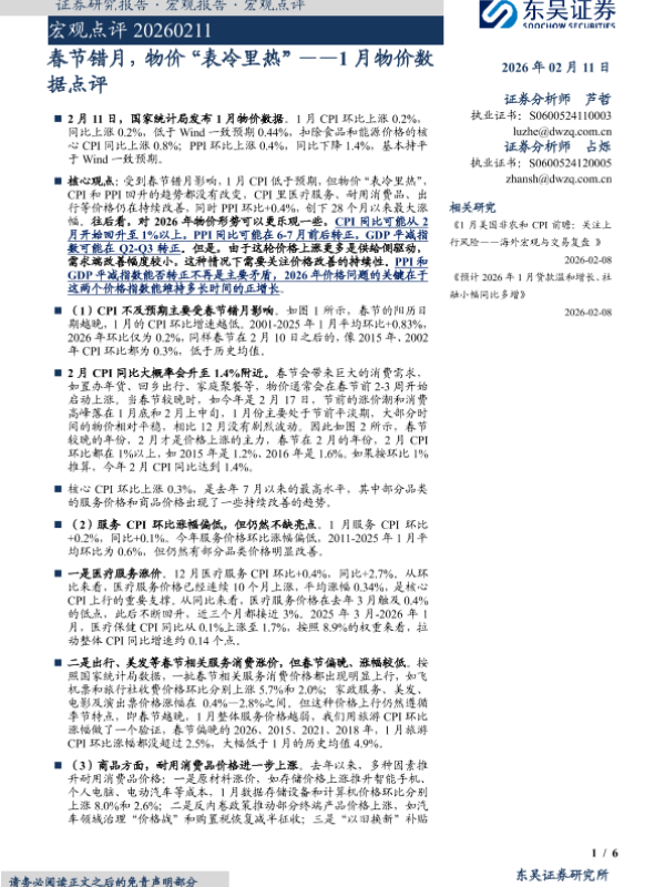 【东吴证券】【202602】春节错月,物价“表冷里热”——1月物价数据点评-6页 证券期货研究报告