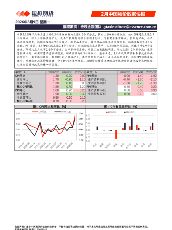 【国投期货】【202602】2月中国物价数据快报-2页 证券期货研究报告