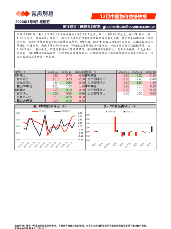 【国投期货】【202601】12月中国物价数据快报-2页 证券期货研究报告