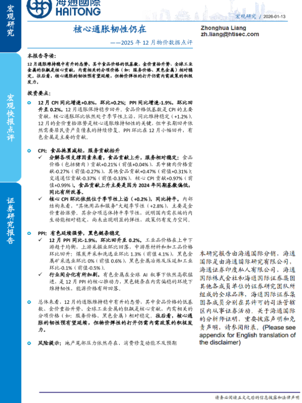 【海通国际】【202601】核心通胀韧性仍在——2025年12月物价数据点评-11页 证券期货研究报告