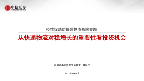 【中信证券】【20220414】交运物流行业疫情扰动对快递物流影响专题:从快递物流对稳增长的重要性看投资机会-34页 行业研究