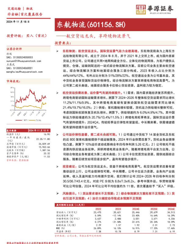 【华源证券】【20241118】东航物流-601156.SH-航空货运龙头,享跨境物流景气-24页 行业研究