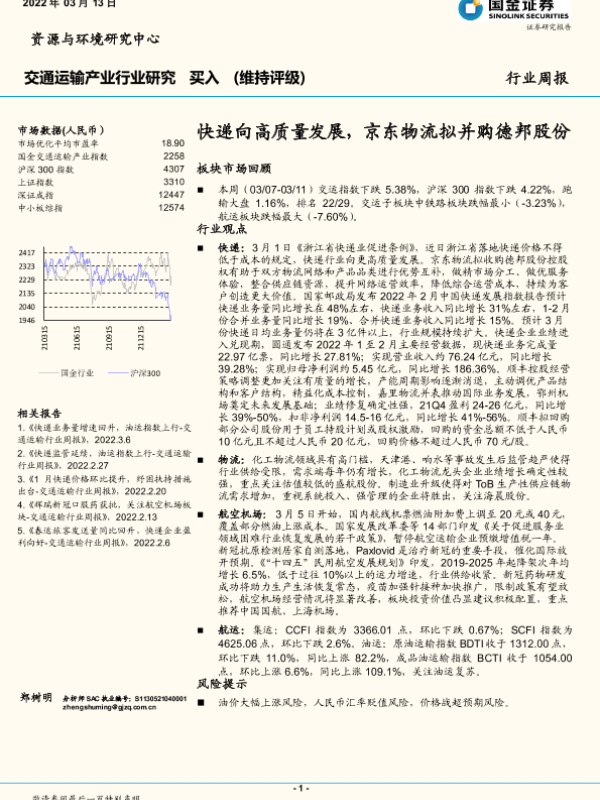 【国金证券】【20220313】快递向高质量发展,京东物流拟并购德邦股份-14页 行业研究