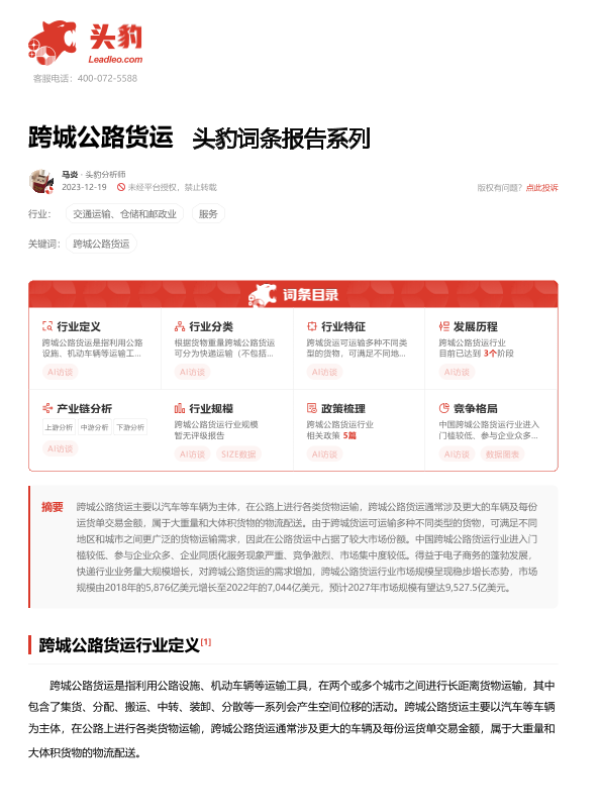 【头豹研究院】【20240129】跨城公路货运-17页 行业研究