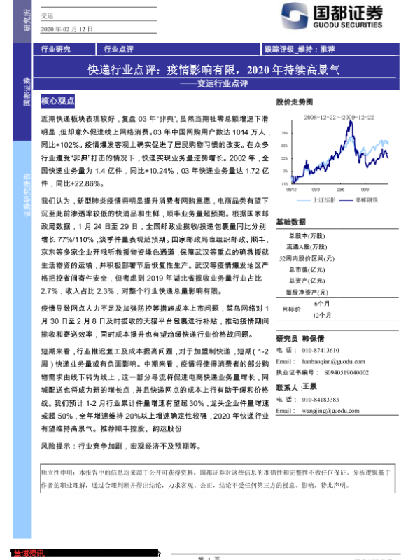 【国都证券】【20200212】快递行业点评:疫情影响有限,2020年持续高景气-2页 行业研究