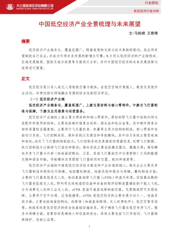 【大公国际】【2025】低空经济行业分析:中国低空经济产业全景梳理与未来展望-7页 行业研究