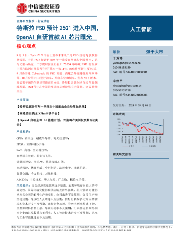 【中信建投证券】【20240908】2024年09月08日更新-【中信建投】特斯拉FSD预计25Q1进入中国,OpenAI自研首款AI芯片曝光-15页 行业研究