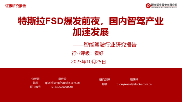 【浙商证券】【20231027】智能驾驶行业研究报告-特斯拉FSD爆发前夜-国内智驾产业加速发展-50页 行业研究