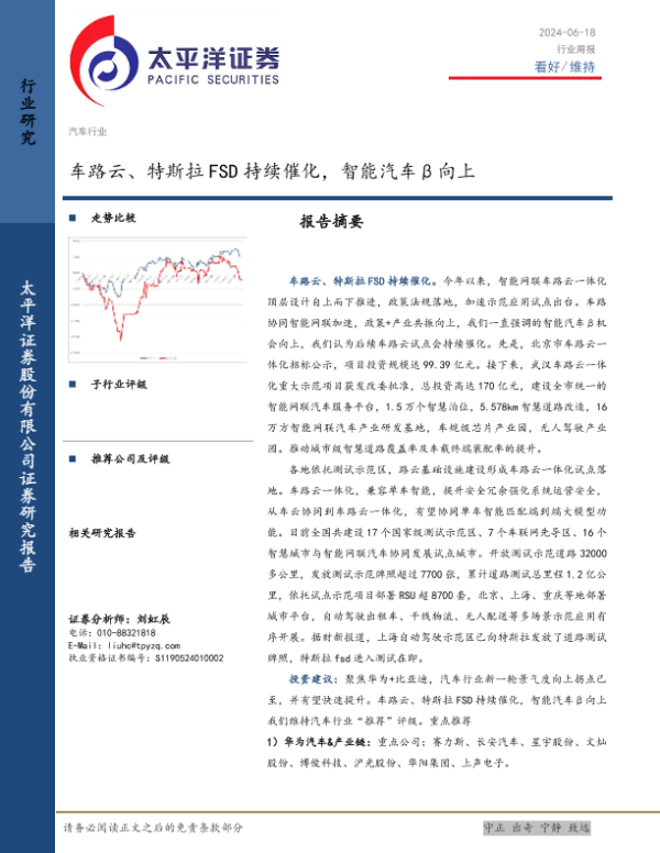 【太平洋证券】【20240618】20240618-太平洋-汽车行业周报:车路云、特斯拉FSD持续催化,智能汽车β向上-22页 行业研究