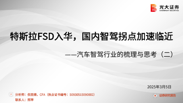【光大证券】【20250305】汽车智驾行业的梳理与思考(二):特斯拉FSD入华,国内智驾拐点加速临近-24页 行业研究