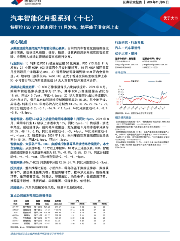 【国信证券】【20241109】汽车智能化月报系列(十七):特斯拉FSDV13版本预计11月发布,地平线于港交所上市-60页 行业研究