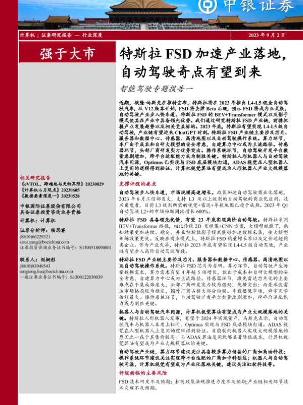 【中银证券】【20230902】智能驾驶专题报告一:特斯拉FSD加速产业落地,自动驾驶奇点有望到来-24页 行业研究