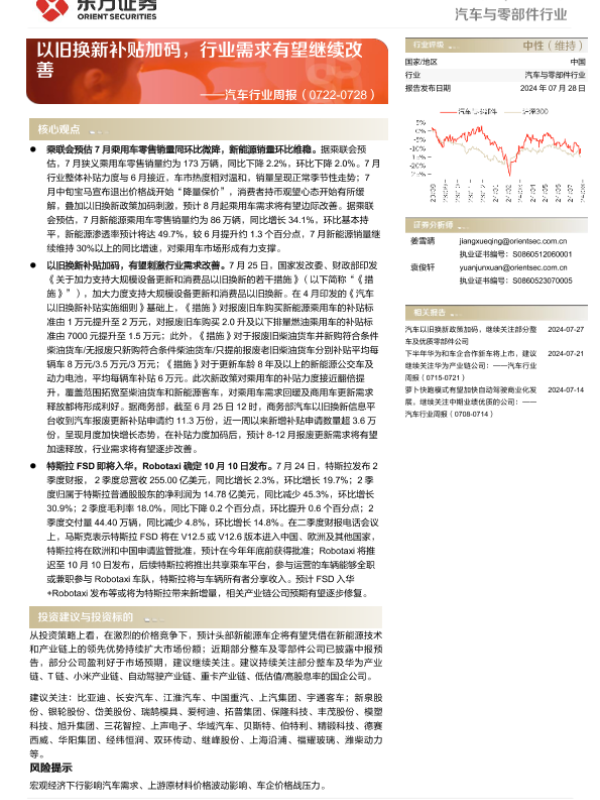 【东方证券】【20240728】20240728-东方证券-汽车行业周报:以旧换新补贴加码,行业需求有望继续改善-17页 行业研究