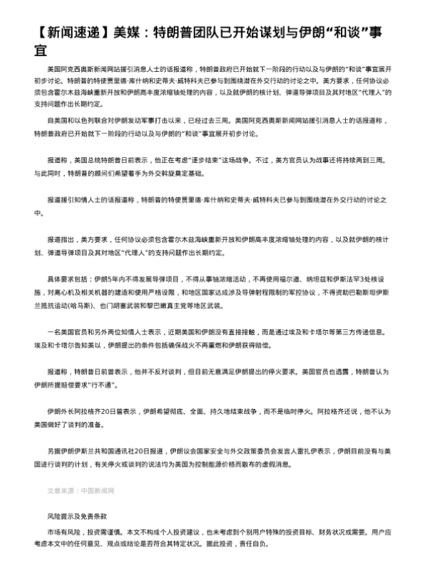 【英大期货】【202304】美媒:特朗普团队已开始谋划与伊朗“和谈”事宜-2页 宏观策略