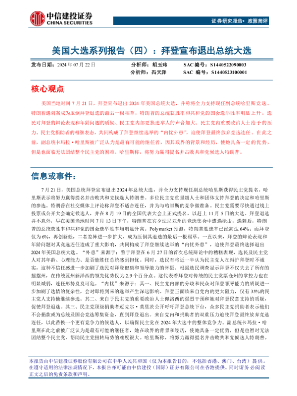 【中信建投证券】【20240722】美国大选系列报告(四):拜登宣布退出总统大选-11页 行业研究