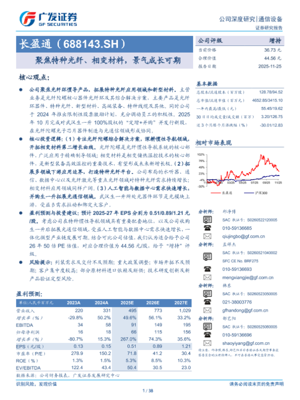 【广发证券】【202511】长盈通(688143)聚焦特种光纤、相变材料,景气成长可期-38页 证券期货研究报告