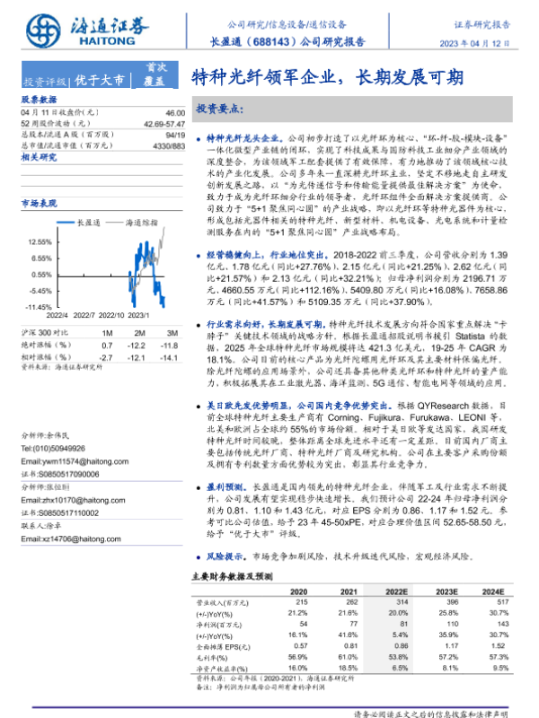 【海通证券】【20230412】长盈通-688143.SH-特种光纤领军企业,长期发展可期-31页 行业研究