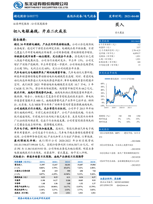 【东北证券】【20210408】切入电驱扁线,开启二次成长-31页 行业研究