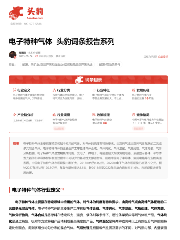 【头豹研究院】【20231020】电子特种气体 头豹词条报告系列-21页 行业研究