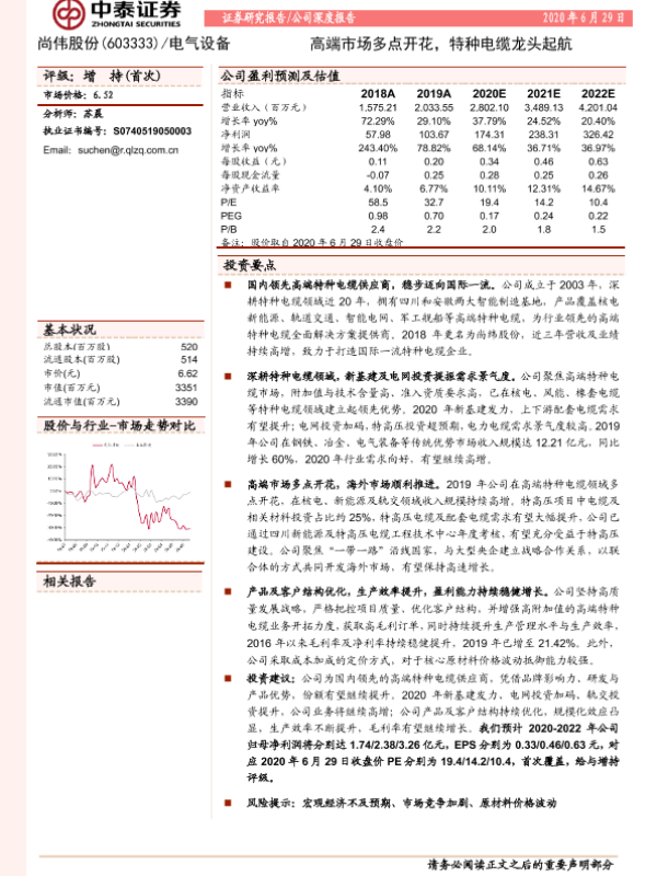 【中泰证券】【20200629】20200629-中泰证券-尚纬股份-603333.SH-高端市场多点开花,特种电缆龙头起航-21页 行业研究