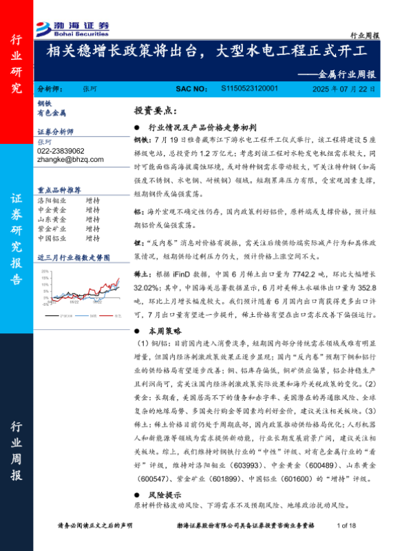 【渤海证券】【20250722】金属行业周报:相关稳增长政策将出台,大型水电工程正式开工-18页 行业研究