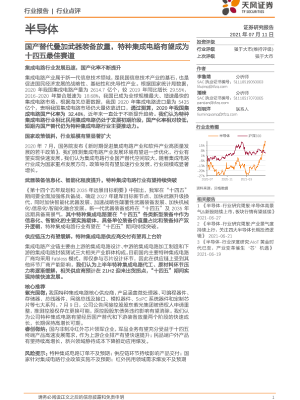 【天风证券】【20210711】半导体行业:国产替代叠加武器装备放量,特种集成电路有望成为十四五最佳赛道-2页 行业研究