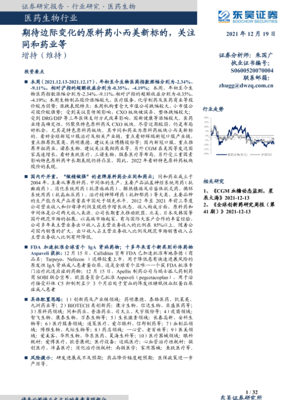 【东吴证券】【20211219】期待边际变化的原料药小而美新标的,关注同和药业等-32页 行业研究