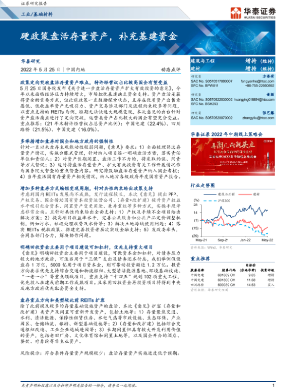 【华泰证券】【20220525】硬政策盘活存量资产,补充基建资金-6页 行业研究
