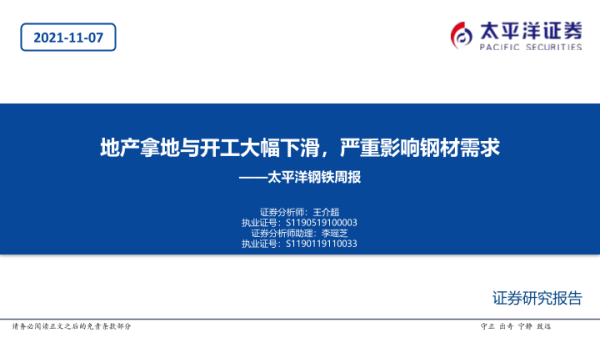 【太平洋证券】【20211107】20211107-太平洋-钢铁周报:地产拿地与开工大幅下滑,严重影响钢材需求-51页 行业研究