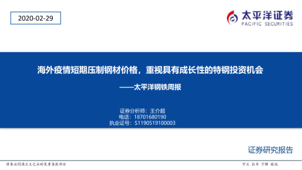 【太平洋证券】【20200229】太平洋钢铁周报:海外疫情短期压制钢材价格,重视具有成长性的特钢投资机会-47页 行业研究