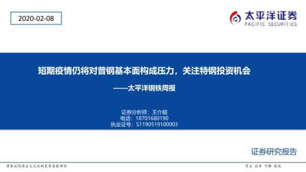 【太平洋证券】【20200208】20200208-太平洋-钢铁周报:短期疫情仍将对普钢基本面构成压力,关注特钢投资机会-47页 行业研究