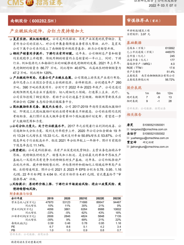 【海通证券】【20220307】南钢股份-产业链纵向延伸,分红力度持续加大-23页 公司研究