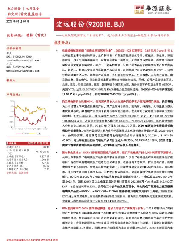 【华源证券】【202603】电磁线领域国家级“单项冠军”,超/特高压产品高壁垒+新能源车布局+海外扩张-4页 证券期货研究报告