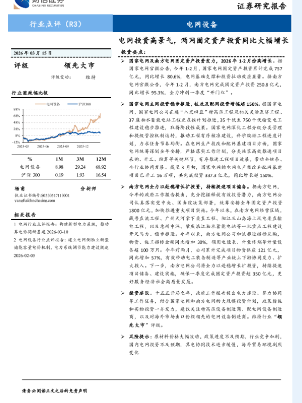 【财信证券】【202603】电网投资高景气,两网固定资产投资同比大幅增长-4页 证券期货研究报告
