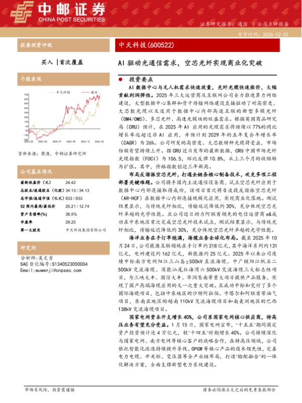 【中邮证券】【202602】AI驱动光通信需求,空芯光纤实现商业化突破-5页 证券期货研究报告