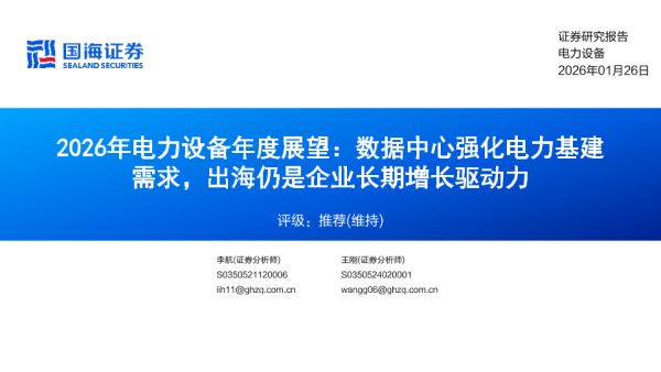 【国海证券】【202601】2026年电力设备年度展望:数据中心强化电力基建需求,出海仍是企业长期增长驱动力-31页 证券期货研究报告
